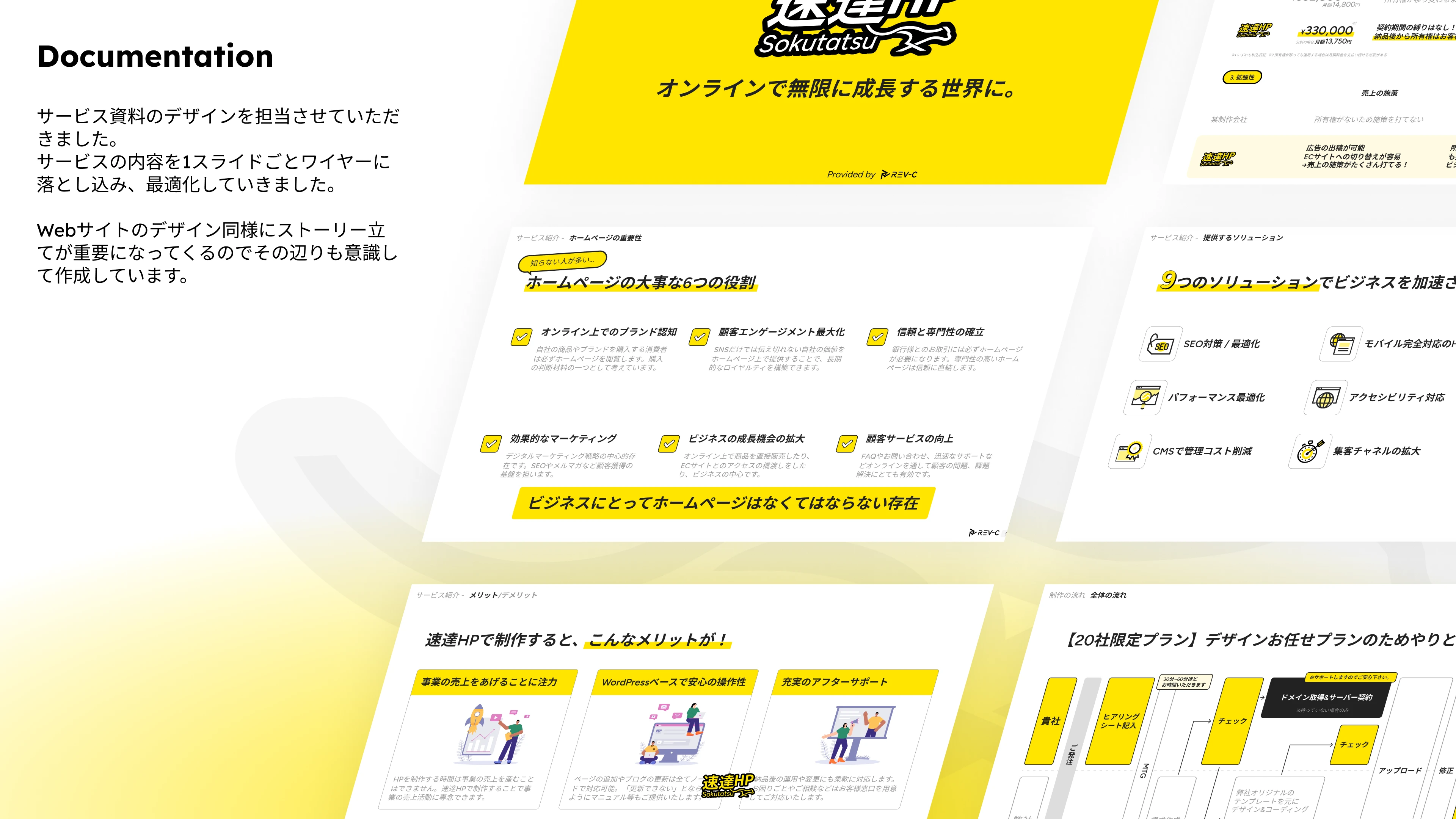 速達HPさまのサービスロゴ、ランディングページ、資料を制作いたしました。 サービスの特徴をデザインに落とし込み、ブランドとしての統一感を意識して制作させていただきました。